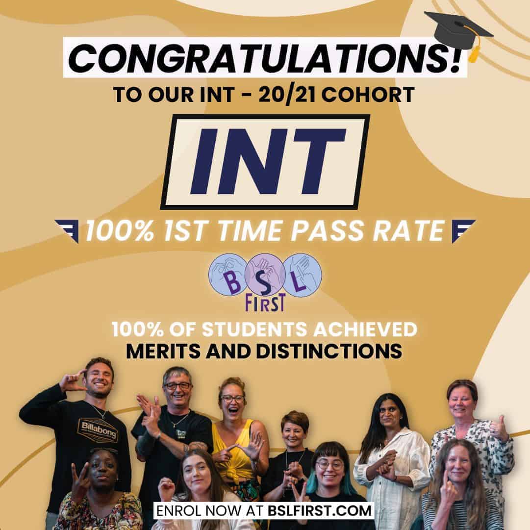 We are particularly pleased to report a 100% first time pass rate, including 100% Merits and Distinctions, for Part 2 of the INTRA6 qualification. 8 students from the INT-20/21 cohort have become the very first BSL First graduates and will now begin their new careers as qualified BSL/English interpreters.